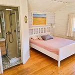 Boendet har ett badrum med en separat toalett och en dusch.